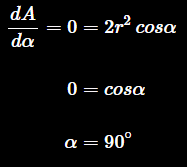 since we are dealing with 0° ≤ α ≤ 180°, then sinα > 0, then -2r²sinα < 0, therefore d²A/dα² < 0, meaning the Area of the rectangle has a valid maximum value.